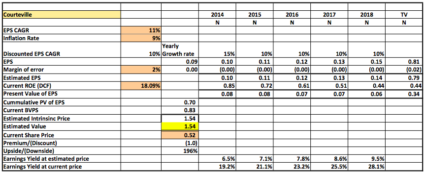 Another major driver could also be dividend payouts. The last time Courteville had such a boost in price was in 2012 when it offered a bonus issue of 1 for 5 and 5kobo dividend respectively taking the share price to as high as 89kobo (its highest ever). Whilst I don’t see that happening this year, I do feel dividend payout could be as high as 40% (23% in 2013). I project an earnings per share of about 10 kobo for 2014 giving us a dividend of 4kobo per share and a yield based on the current price of 8%.