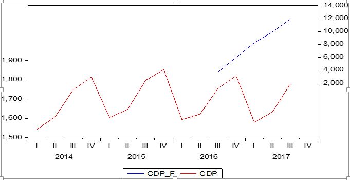 With that out of the way, we can begin to solve (in-sample forecast) for the desired or expected GDP for the Buhari’s administration (Q3 2016- Q3 2017) depending on the size of their quarterly budget releases. Therefore, according to our preceding analysis, the quarterly GDP forecasts are 3,690.63, 5,976.61, 8,230.34, 9,935.26 and 11,948.63 Billion Naira for the periods between Q3 2016 and Q3 2017 respectively.