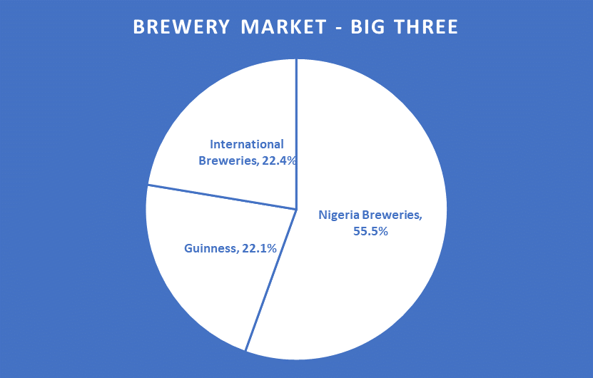 In Nigeria, this battle is currently between three major brewers: International Breweries (owned by AB InBev), Guinness Nigeria (owned by Diageo) and Nigeria Breweries (partly owned by Heineken).