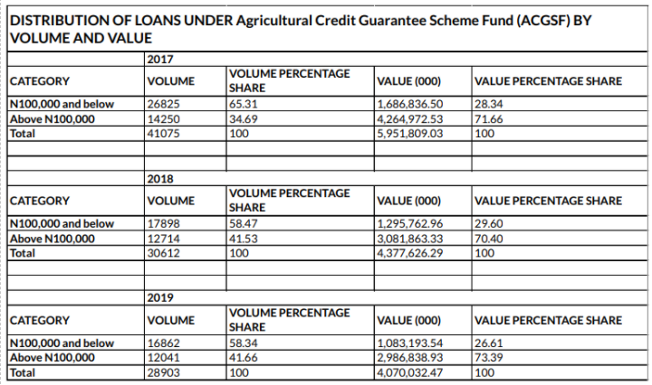According to a recent report published by the National Bureau of Statistics (NBS), the distribution of loans under the Agricultural Credit Guarantee Scheme Fund (ACGSF) has maintained a downward trend since 2017.