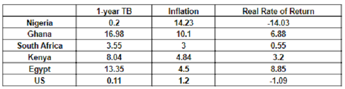 The major push behind this aggressive buying interest seen in the equity space can be traced to the depressed stop rates at Wednesday’s treasury bills auction. The auction was concluded with stop rates at 0.035%, 0.15% and 0.30% for the 91-day, 182-day, and 364-day treasury bill, respectively (as against, 0.34%, 0.50%, and 0.98% recorded in the last auction). Compared to its peers, Nigeria Treasury Bills is the only paper yielding negative real rate of return. It is safe to say we should not be expecting any FPI inflow in the fixed income space soon.