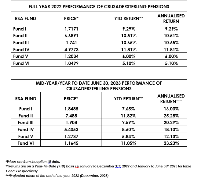 We are thrilled to announce that CrusaderSterling Pensions (CPL) has recorded an impressive upward trend in RSA Fund price and returns all through the first half of the year 2023 (January to June).