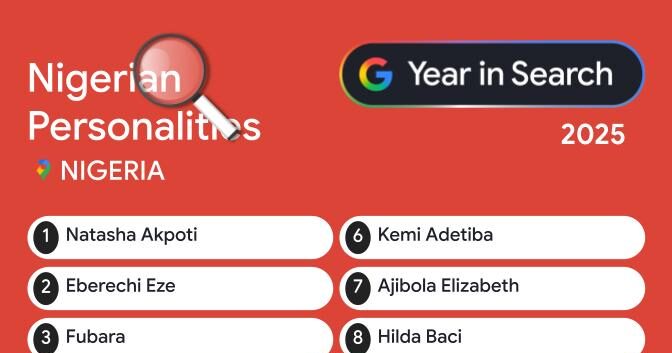 “This year, Nigerians used Search to stay on top of a fast-moving news cycle. High-profile figures drove significant interest, with Senator Natasha Akpoti emerging as the #1 most searched Nigerian personality, highlighting how central political discourse was throughout the year,”