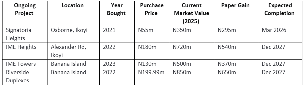 Data obtained by Nairametrics from verified sales and resale transactions show that buyers who entered some of the company’s flagship schemes between 2018 and 2023 have already booked gains ranging from N250m to over N650m per unit, with annual rental yields in prime projects now hovering between N18m and N35m.