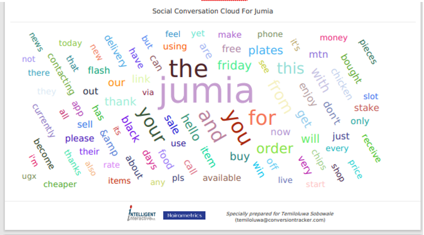 As we can see above in Top mentions report following the social conversation cloud, Jumia Nigeria was busy with its business of selling “Enjoy 80% off appliances during Black Friday”, a conversation that shows that if you are in the technology/e-commerce space you must take Black Friday seriously and if you are competing with Jumia you must be ready to do above 80% off discounts on appliances.