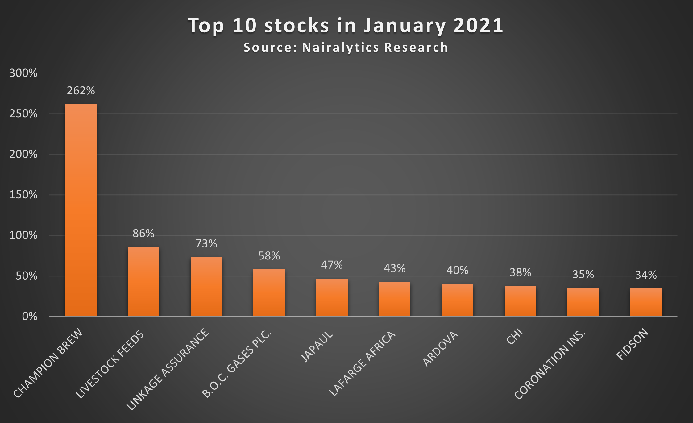 Stocks have continued with the bullish run which started in July 2020 culminating in a year-to-date return of 50.3% in December 2020 by far the best in the world. Investors will also not mind that the 5.32% return recorded in January is the lowest month to date return since August 2020.
