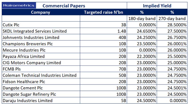 - 174-day CP at 23.00%: N111,166.67 return on N1 million.