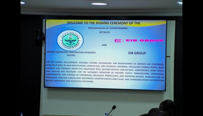 Nigeria took a significant step toward defence self-reliance as the Defence Industries Corporation of Nigeria (DICON) signed a far-reaching Memorandum of Understanding (MoU) with EIB Group to localise the production of unmanned systems, military hardware and advanced digital defence solutions.